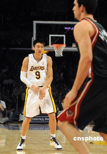 當?shù)貢r間十二月七日晚,NBA洛杉磯湖人隊在主場以105比92輕取雄鹿隊,中國球員孫悅首度在NBA常規(guī)賽上登場。孫悅剛一上場顯得有些緊張,短短幾分鐘內(nèi)犯規(guī)次四次。中新社發(fā) 張煒 攝