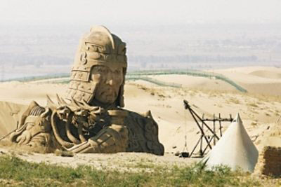 制作方恐怕是怕西方觀眾對中國木乃伊沒有印象,因此在影片的開頭特意將一個巨大的人像杵在茫茫沙漠之中,一眼望去,簡直和古埃及的獅身人面像如出一轍,看來,木乃伊依舊是古埃及的特產(chǎn)。