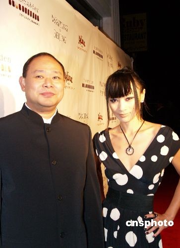 圖為好萊塢華裔女星白靈與張倫導(dǎo)演在首映式上。中新社發(fā) 盧威 攝
