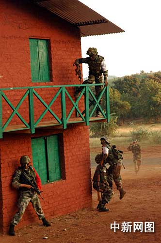 正在印度貝爾高姆舉行的“攜手—二00八”中印陸軍反恐聯(lián)合訓練十一日進入第三階段。中新社記者 孫宇挺 攝