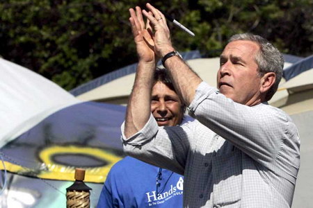 布什在職期間的“尷尬”瞬間很多,這是他2006年4月27日在對卡特里娜颶風(fēng)災(zāi)區(qū)視察時(shí)造訪了密西西比州的一個(gè)加油站,他手下工作人員當(dāng)時(shí)向他扔了一支白色的圓珠筆以便讓他為一名志愿者的郵箱提詞,但布什總統(tǒng)卻未能接住筆,他的臉部被圓珠筆擊中。