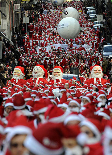 12月14日,打扮成圣誕老人模樣的人們參加在葡萄牙城市波爾圖舉行的一年一度的圣誕老人巡游。參加今年波爾圖圣誕老人巡游的人數(shù)達(dá)14000多,參加者意欲創(chuàng)造新的吉尼斯世界紀(jì)錄。