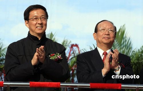 12月15日,上海市市長韓正(左)與國民黨副主席蔣孝嚴(右)在洋山港出席兩岸海上直接通航首航儀式。當日,海峽兩岸海上、空中直航及直接通郵在兩岸同步啟動。