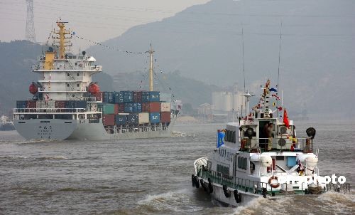 由福州港開(kāi)出的共有4艘船舶分別為:華航3號(hào)、吉祥山號(hào)、金海緣號(hào)、興華號(hào)。中新社發(fā) 祝敏松 攝