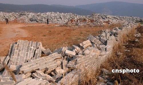 12月17日上午,備受社會(huì)關(guān)注的河南洛陽龍門石窟西山違法別墅群被當(dāng)?shù)卣畯?qiáng)制拆除。圖為當(dāng)日拆除后的廢墟。中新社發(fā) 張曉理 攝