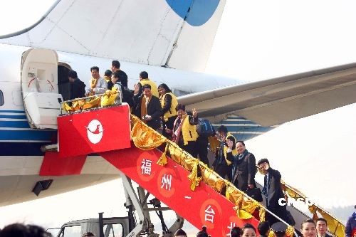 12月18日中午,由廈門航空公司執(zhí)飛的波音757-200機型的MF883航班從福州長樂機場滿載起飛首航臺灣。中新社發(fā) 祝敏松 攝