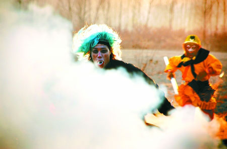 “沙僧”很敬業(yè) 洪海,31歲,雷人表現(xiàn):練牽馬,裝扮怪異嚇驚馬。