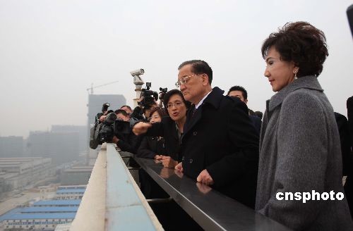 12月20日,中國(guó)國(guó)民黨榮譽(yù)主席連戰(zhàn)一行訪問(wèn)上海世博局并俯瞰正在建設(shè)中的世博場(chǎng)館。中新社發(fā) 潘索菲 攝