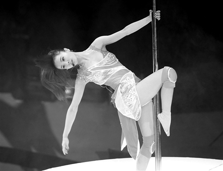 當(dāng)然,最猛的還是“舞娘”蔡依林“七十二變”的舞臺功夫。劈腿、倒掛、直立一字馬、無重力旋轉(zhuǎn),體操、瑜珈、彩帶舞、鋼管舞、芭蕾舞、機械舞、踢踏舞……爭分奪秒的勁歌熱舞看得觀眾應(yīng)接不暇。《玩美》、《招牌動作》等快歌中,蔡依林聳肩、扭腰、甩胯,盡顯性感,《一個人》、《檸檬草的味道》等傷感情歌中,她又表情憔悴,惹人憐惜。當(dāng)穿皮衣、面無表情的男舞伴登場,一陣犬吠聲中,蔡依林最魅惑的武器“鋼管舞”出臺了——匍匐、旋轉(zhuǎn)、騰空飛躍、蜿蜒纏繞、無聲扭轉(zhuǎn),最后一個高難度動作“正手握桿360度接反手握”更是驚起了現(xiàn)場一片驚呼聲!而《看我七十二變》、《日不落》、《愛情36計》、《倒帶》等蔡氏經(jīng)典歌曲都不斷引起現(xiàn)場高聲大合唱,剛剛嫁入華納的蔡依林興致高昂,她還“打廣告”告訴成都觀眾自己除了一張英文專輯《愛的練習(xí)曲》外,幾乎兩年未發(fā)新專輯,但很快一張全新專輯就會推出。