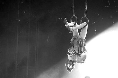 20日晚的成都寒氣逼人,四川省體育館內(nèi)卻是一番沸騰景象,蔡依林“唯舞獨尊成都演唱會”在此熱辣舉行。歌壇小天后在成都展示的花樣百出的舞臺功夫,讓人嘆為觀止——開場就是吊環(huán),只見白幔緩緩落下,吊環(huán)上的蔡依林以藍色性感舞娘裝扮亮相,吊在離地足有兩米多的吊環(huán)上玩男子體操的高難度動作,身下好幾個男護衛(wèi)嚴(yán)陣以待注意她的安全。記者身邊的觀眾不斷發(fā)出驚呼以及“她是不是在玩命”之類的議論。蔡依林的全套舞功展示,的確讓她的成都個唱在眾多巨星中顯得獨一無二。
