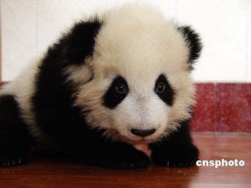 2004年12月拍攝的團團 ,只有三個月面對鏡頭膽怯又好奇。中新社發(fā) 何永果 李偉 攝