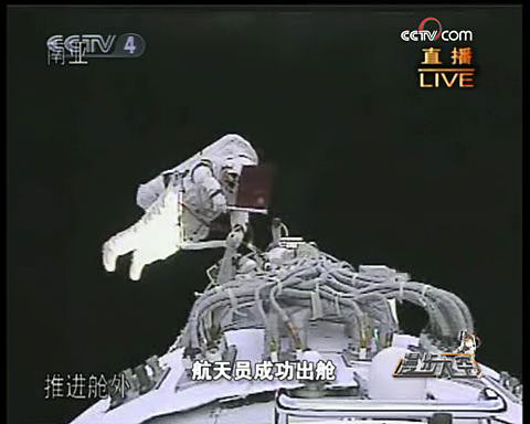NO 2.中國太空行走第一步:2008年9月25日,中國航天員翟志剛、劉伯明、景海鵬搭乘“神舟七號(hào)”載人飛船,在酒泉衛(wèi)星發(fā)射中心通過長征二號(hào)F型火箭發(fā)射升空。9月27日16:39,身穿國產(chǎn)“飛天”艙外航天服的翟志剛打開艙門,執(zhí)行我國首次太空出艙任務(wù),成功取回放置在艙外的試驗(yàn)品。9月28日傍晚,神舟七號(hào)返回艙在內(nèi)蒙古主著陸場成功著陸,中國第三次載人航天任務(wù)圓滿完成。