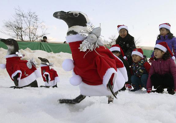穿著圣誕服裝的企鵝,入圍了“自認(rèn)為是人類的動(dòng)物”獎(jiǎng)