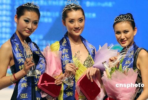 12月25日晚,2008百代流芳模特大賽中國(guó)總決賽”在北京海淀劇院上演。選自中國(guó)各分賽區(qū)的18位佳麗先后進(jìn)行了內(nèi)衣、休閑裝、中國(guó)歷代服飾和晚裝等多個(gè)比賽環(huán)節(jié)的角逐,最終由11號(hào)選手高潔摘得桂冠,15號(hào)選手刑璐和07號(hào)選手李卓分別獲得亞軍和季軍。中新社發(fā) 錢(qián)興強(qiáng) 攝