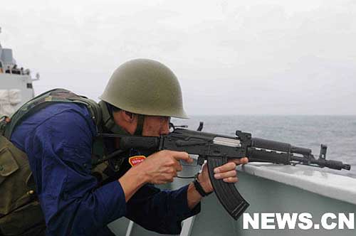12月27日上午,“武漢”號官兵進(jìn)行了航海演練。主要項(xiàng)目包括模擬射擊、海上目標(biāo)搜索等。