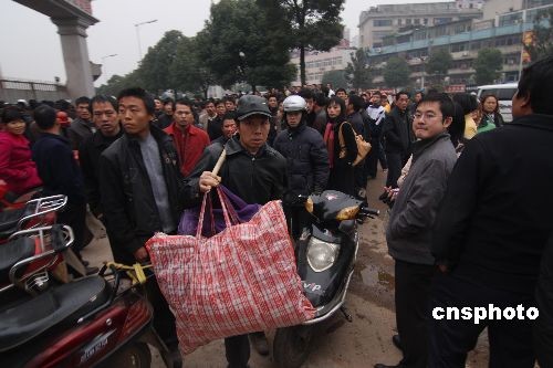 一民工拿行李回家。 中新社發(fā) 郭國(guó)權(quán) 攝