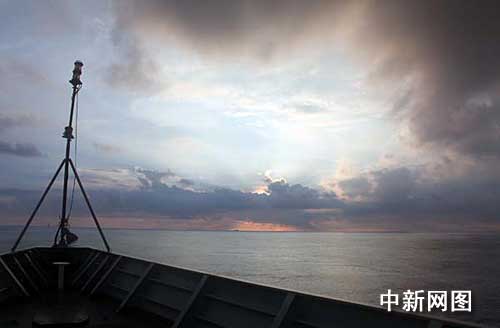 護(hù)航途中絢麗晚霞。中新社記者 孫自法 攝