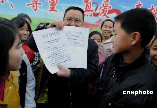 吳天春校長(zhǎng)和同學(xué)們兩天前受到胡總書(shū)記的看望,一位羌族女學(xué)生向臨告別時(shí)的總書(shū)記送上一封信和學(xué)校震后重建規(guī)劃圖的賀年片,兩天后就收到從成都轉(zhuǎn)來(lái)總書(shū)記的回信。