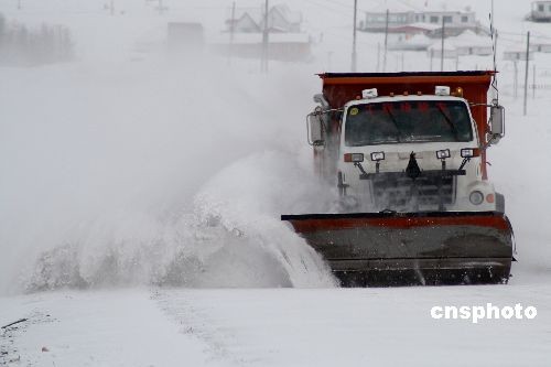 新疆哈密一輛道路清障車(chē)在清除道路積雪。 中新社發(fā) 蔡增樂(lè) 攝