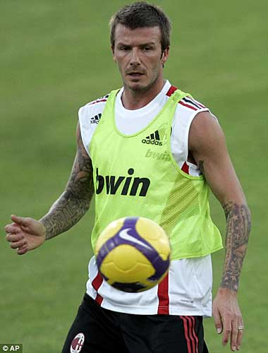 圖:貝克漢姆球場上炫耀新紋身(2)
