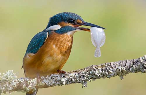 據(jù)英國媒體報道,英國業(yè)余攝影師保羅•理查茲近日在英國彭布魯克郡一處河口幸運地拍到了一只小翠鳥捕食和進食的場面,發(fā)現(xiàn)這只雌性小翠鳥在二小時內(nèi)捕獲并吞吃了6種不同的魚類,有比目魚、蝦、牡蠣、蝦虎魚、胭脂魚和小黑鱸。現(xiàn)年55歲的理查茲說:“我奇怪地看著這里發(fā)生的一切。這表明此鳥和我們?nèi)祟愐粯,也喜歡吃不同種類的食物。我看到她一天三次來河口捕魚,每次能捕到4、5條魚。對于這么小的一只鳥來說,這可以說頓頓都是大餐!边@也難怪,翠鳥每天得吃自身體重一樣多的食物才能活下來,因此對其飸餮畫面不必大驚小怪。
