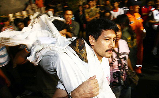 一名消防員在搬運(yùn)尸體。