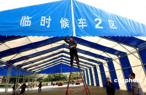 圖:福州火車站搭建臨時(shí)候車區(qū)迎春運(yùn)