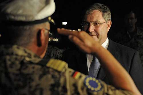 近日,德國國防部長弗朗茨·約瑟夫·容為參加歐盟領(lǐng)導(dǎo)的打擊海盜行動(dòng)的德國官兵送行,此次行動(dòng)德國派出了卡爾斯魯赫(Karlsruhe)號護(hù)衛(wèi)艦參與。