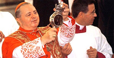 盡管有關他生活和工作的信息很有限,但他變得出名是因為令人驚奇的的是他凝固的血液每年都會變成液體,第一次有記錄的時間是1389年。他凝固干涸的血液裝在一個圣骨匣的膠囊里,當這些膠囊每年三次被帶到接近他的身體時,血液就會變成液態(tài),那時成千上萬的人都會聚集到那不勒斯教堂觀看,在高壇上祈禱的大主教會用一個小玻璃瓶裝著干涸的血液,當血液液化時,主教會再次舉起小玻璃瓶以證實血液確實液化。這種儀式一年舉行三次,其中最著名的一年一次舉行紀念圣亞努阿里烏斯尋道的節(jié)日上。一些科學解釋說這種奇怪的液化體不是血而更像是觸變的凍膠,如水合氧化鐵在實驗室中也會有相同的反應。但實際上干枯的血在特定的日子里液化又增加了神秘性。