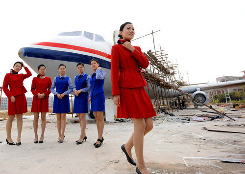 6名準(zhǔn)空姐演示了自己在課堂上所學(xué)過的知識。