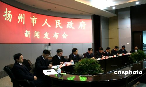 1月11日上午,揚(yáng)州召開新聞發(fā)布會,發(fā)布2009年市委、市政府“一號文件”的主要內(nèi)容和起草情況及2009年市政府為市區(qū)人民辦實(shí)事項(xiàng)目情況,是該市連續(xù)8年下發(fā)關(guān)注民生的“一號文件”,成為拉動和改善當(dāng)?shù)孛裆こ痰闹匾剖帧=衲甑摹耙惶栁募鄙婕熬蜆I(yè)、房地產(chǎn)、醫(yī)療、教育、社會保障、文化建設(shè)等9個方面共計(jì)33條,基本覆蓋了群眾關(guān)注的各大切身利益問題。中新社發(fā) 崔佳明 攝