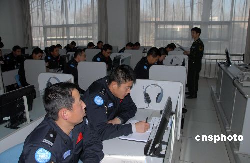 維和防暴隊(duì)員進(jìn)行外語學(xué)習(xí)。中新社發(fā) 由永懷 攝