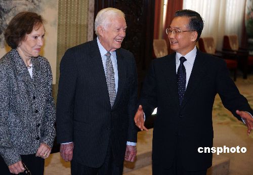 圖:溫家寶會(huì)見美國前總統(tǒng)卡特一行