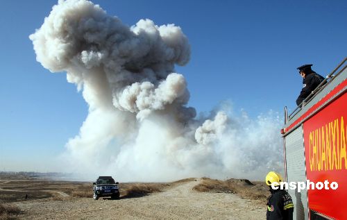 1月14日,北京警方在大興對收繳的3000多箱、價(jià)值100多萬元的劣質(zhì)煙花爆竹進(jìn)行集中銷毀。 中新社發(fā) 杜洋 攝