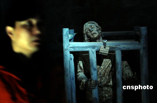 一月中旬,拉薩布達(dá)拉宮雪城監(jiān)獄展示著根據(jù)舊西藏法典而對(duì)農(nóng)奴和奴隸們施加的各種酷刑,包括挖眼、抽筋、割舌、砍手、剁腳,從高山推下摔死,用牛皮包身投入水中淹死,或者立即殺死等。中新社發(fā) 廖攀 攝