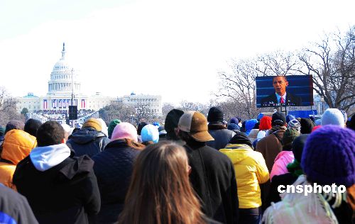 一月二十日,美國(guó)第四十四任總統(tǒng)奧巴馬在國(guó)會(huì)山前宣誓就職。來自全美和世界各地的二百多萬人聚集華盛頓國(guó)家大草地觀看了這一盛大的就職典禮。
