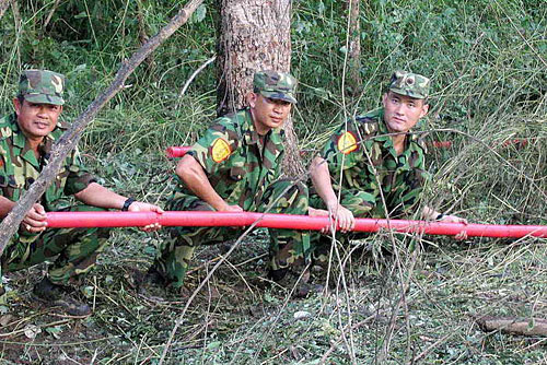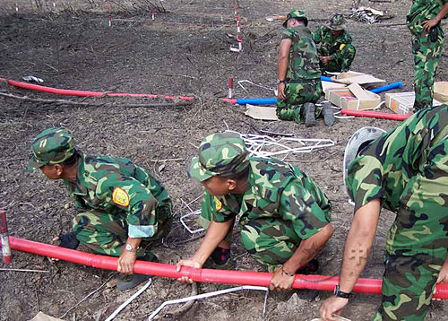 掃雷爆破筒是我軍在中越邊境大掃雷中研制而成并逐漸改進(jìn)后的裝備。其研制者當(dāng)時(shí)受竹子的啟發(fā),提出了研制“掃雷爆破筒”的創(chuàng)意:先打通竹關(guān)節(jié),將炸藥灌進(jìn)竹筒,縱向伸進(jìn)雷區(qū)引爆地雷。經(jīng)某工兵團(tuán)在國外多次掃雷實(shí)踐證明,使用其進(jìn)行爆破掃雷,進(jìn)度比傳統(tǒng)爆破手段提高數(shù)倍。