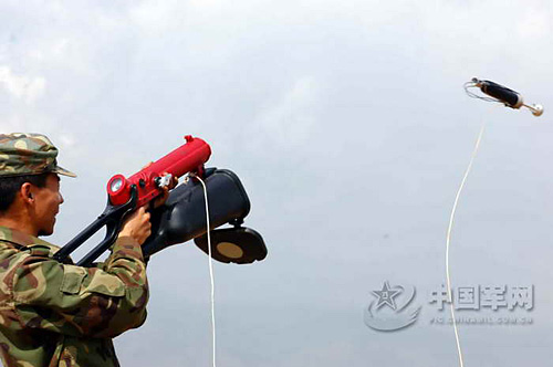 由我國自主研發(fā)采用空氣推進技術(shù)生產(chǎn)的,它在一只0.5L氣瓶內(nèi)灌入20Mpa的壓縮空氣,其射程為50~90m,具有體積小,重量輕,安全可靠,攜帶方便等特點,得到掃雷作業(yè)手的鐘愛。
