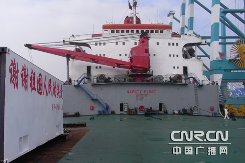 12月17日在亞丁灣海域遭遇索馬里海盜襲擊,成功逼退海盜的中國交通建設(shè)集團(tuán)振華4號(hào)輪22日返回上海振華港機(jī)長興島修造基地。22日早上8:32分振華四號(hào)從長江橫沙錨地起錨向長興島行駛,10:30左右在振華港機(jī)長興島修造基地靠岸。記者吳善陽 王磊