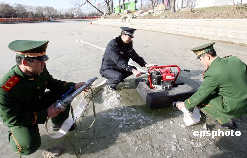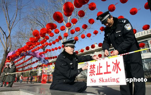 1月22日,北京崇文警方會同相關(guān)部門對龍?zhí)逗䦶R會的各項(xiàng)公眾措施進(jìn)行最后檢查,以確保游人的絕對安全。中新社發(fā) 胡建強(qiáng) 攝