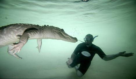 圖:美國(guó)男子無(wú)任何保護(hù)措施“與鱷共舞”(4)