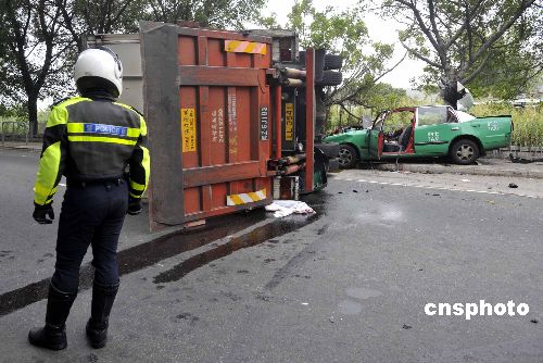 圖:香港落馬洲發(fā)生嚴(yán)重車禍 六人死亡(3)