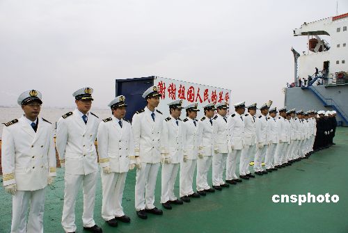 圖:抗擊海盜英雄船員整裝亮相接受表彰(3)