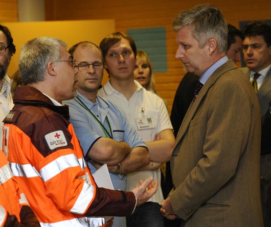 比利時王儲菲利浦王子前往危機應(yīng)對中心看望救援人員。