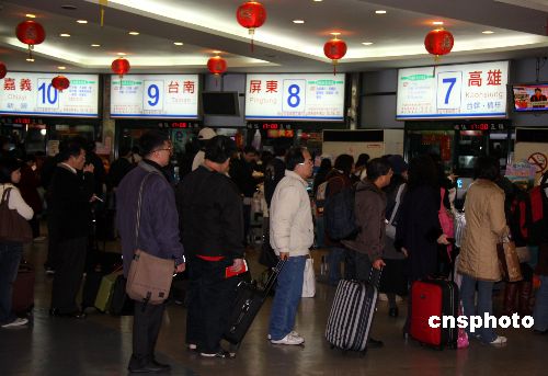 圖:臺北長途汽車客運(yùn)站出現(xiàn)排隊等車回鄉(xiāng)人龍