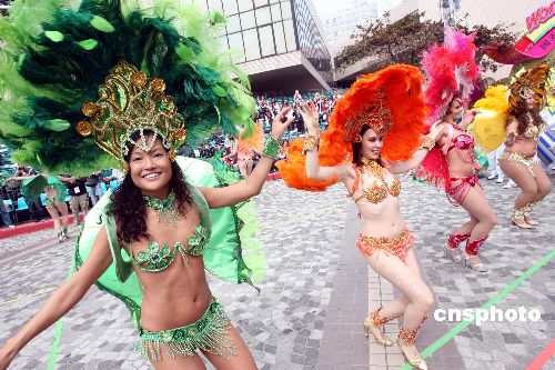 一月二十五日,前來香港參加新春國際匯演之夜的多支隊伍在文化中心廣場進行彩排,丹麥桑巴舞演員身穿華麗舞衣,配合熱情奔放的音樂,點燃現(xiàn)場歡樂氣氛。由香港旅發(fā)局主辦的“2009國泰航空新春國際匯演之夜”將在大年初一晚舉行。中新社發(fā) 洪少葵 攝