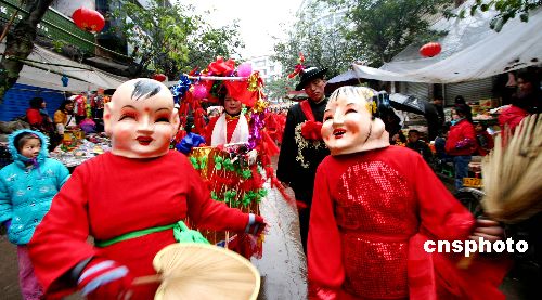 1月26日,雙石鎮(zhèn)群眾歡天喜地迎接新年到來(lái)。當(dāng)日,重慶市永川區(qū)雙石鎮(zhèn)舉行“排街慶新年”活動(dòng),舞龍隊(duì)、腰鼓隊(duì)、車(chē)幺妹隊(duì)、彩旗隊(duì)等隊(duì)伍組成的排街隊(duì)伍,沿途邊舞、邊跳、邊作揖,用喜慶祥和的方式向全鎮(zhèn)群眾拜年。中新社發(fā) 陳仕川 攝