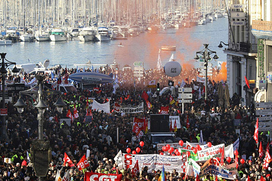 中新網(wǎng)1月30日電 香港大公報(bào)消息,超過二百萬法國工人星期四舉行全國大罷工,從巴黎巴士底監(jiān)獄遺址出發(fā)前往市中心,試圖迫使薩科齊總統(tǒng)和商界領(lǐng)袖作出更大努力,在經(jīng)濟(jì)危機(jī)時(shí)期推行政策保護(hù)職位和工資。