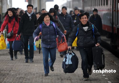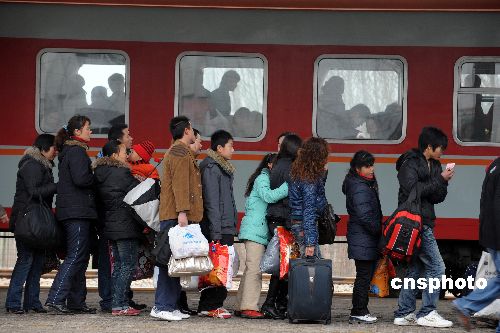 1月31日,安徽省亳州火車站迎來(lái)節(jié)后客流高峰。依照民間“三六九往外走”的習(xí)俗,大批回鄉(xiāng)過(guò)年的民工已開始返城,一些外出務(wù)工者再次與家人告別,開始新一年的打工生活。中新社發(fā) 張延林 攝
