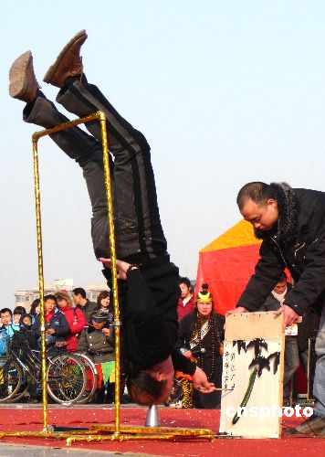 2009年1月31日,農(nóng)歷正月初六,北京蓮花池公園廟會上,各路中華奇人精彩的絕技表演讓游人贊嘆不已,每天舉行的兩場表演成為此次廟會一大亮點。
